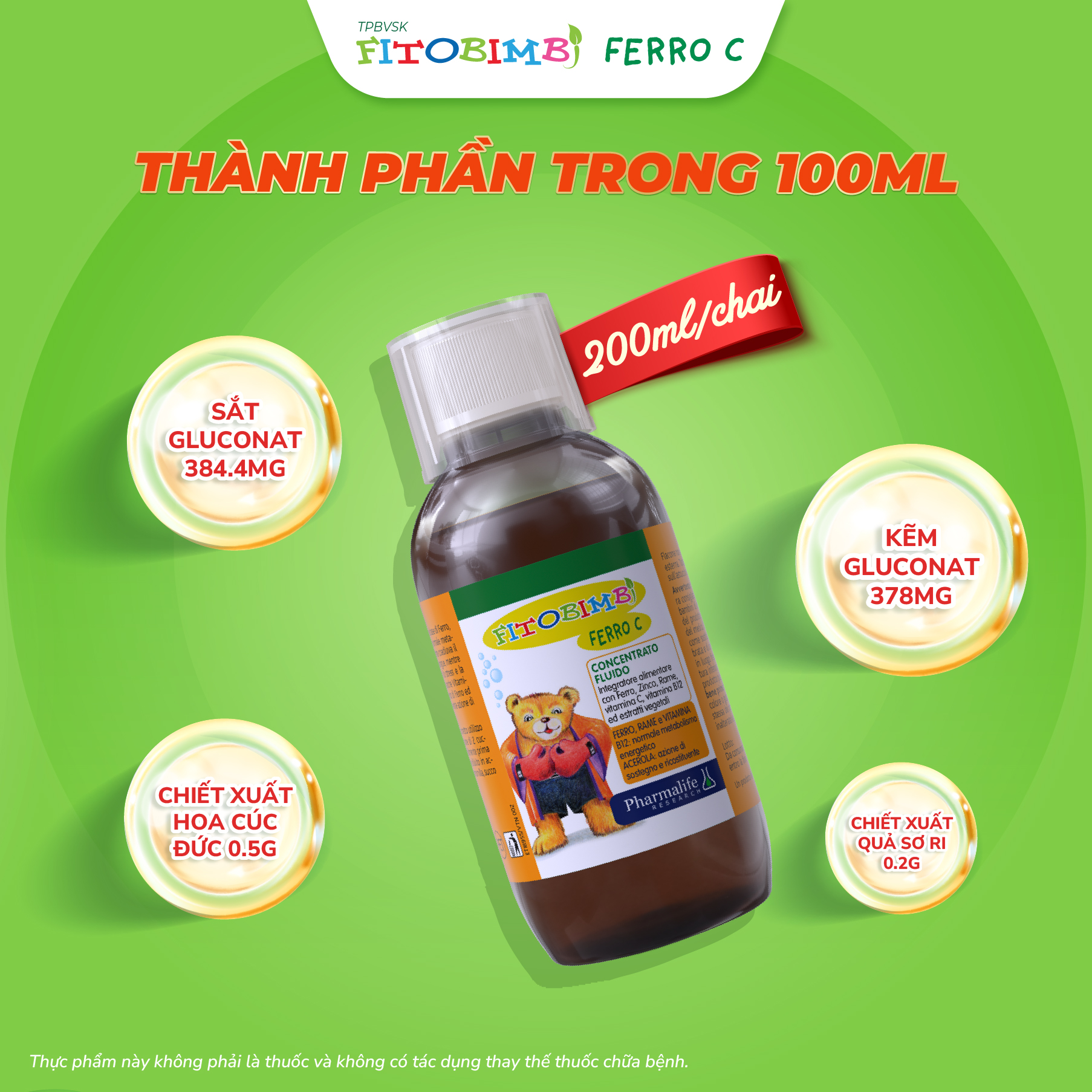 1.Thành phần có trong 100ml Fitobimbi Ferro C
